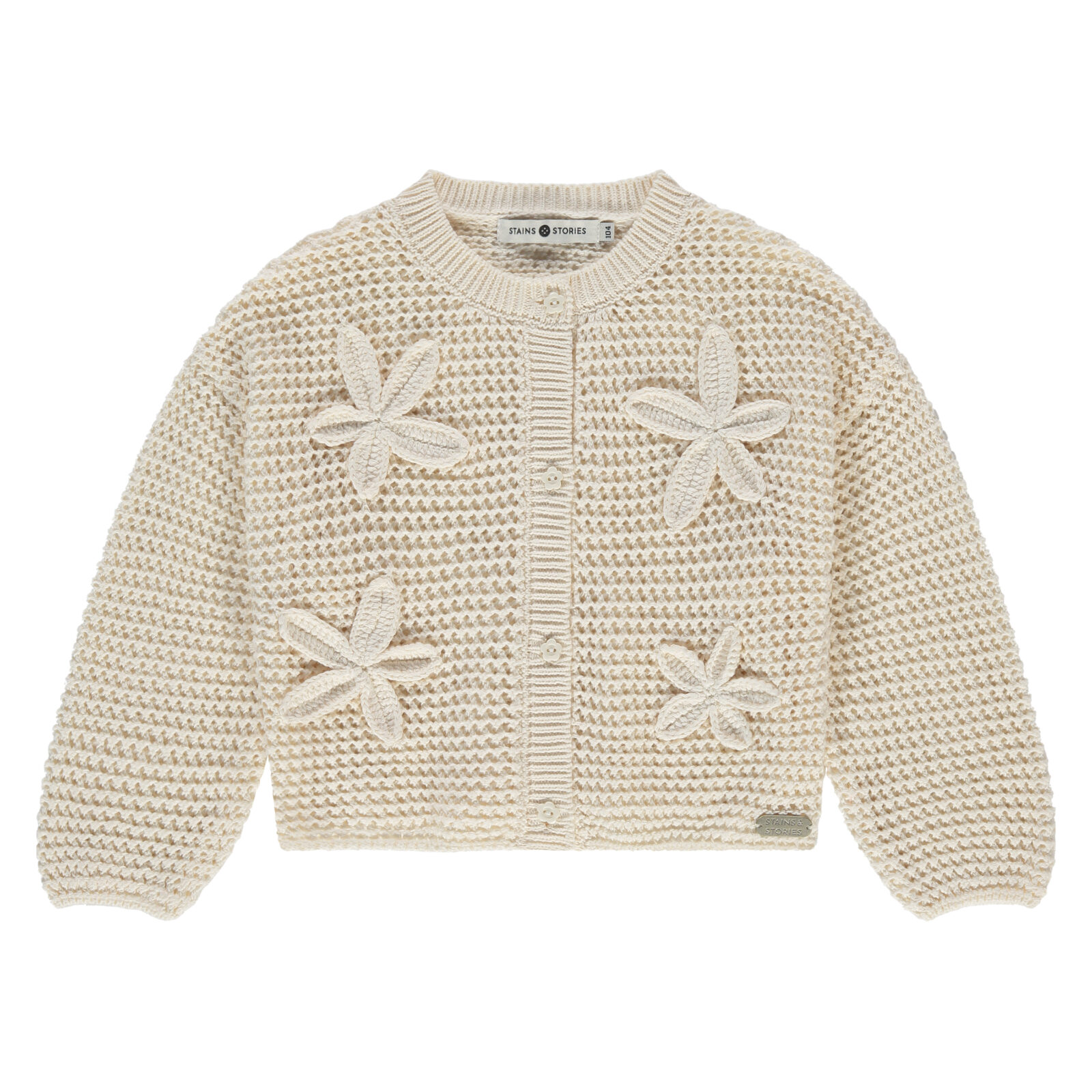 Cardigan Lochmuster, 4 applizierte Blumen Ton in Ton