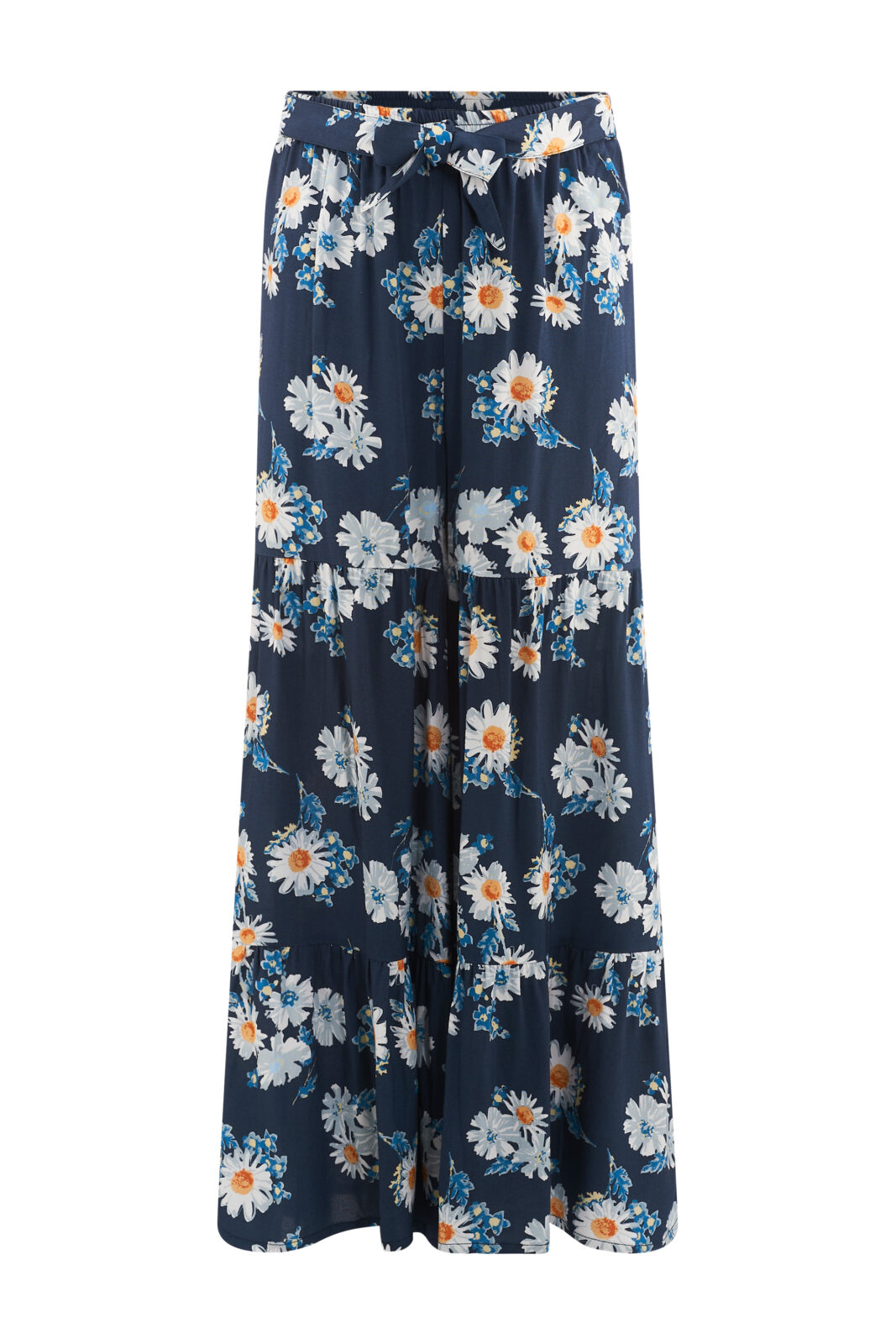 Hose luftig mit Stufen und Bindegürtel, Blumendruck, Pantyfutter