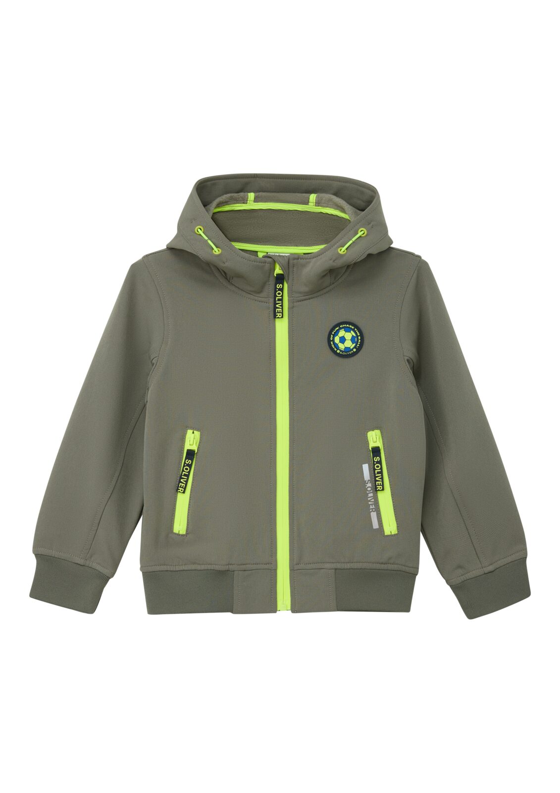 Softshelljacke uni mit Fussballbadge, Kapuze, 2 Taschen und Ärmelbündli