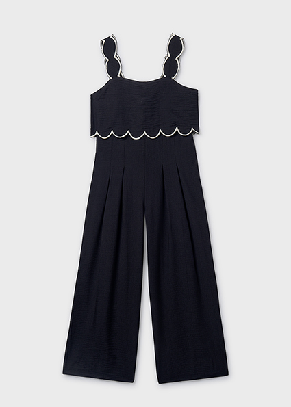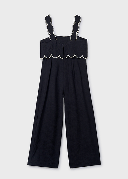 Jumpsuit uni schwarz mit Bogenstickerei Kontrast
