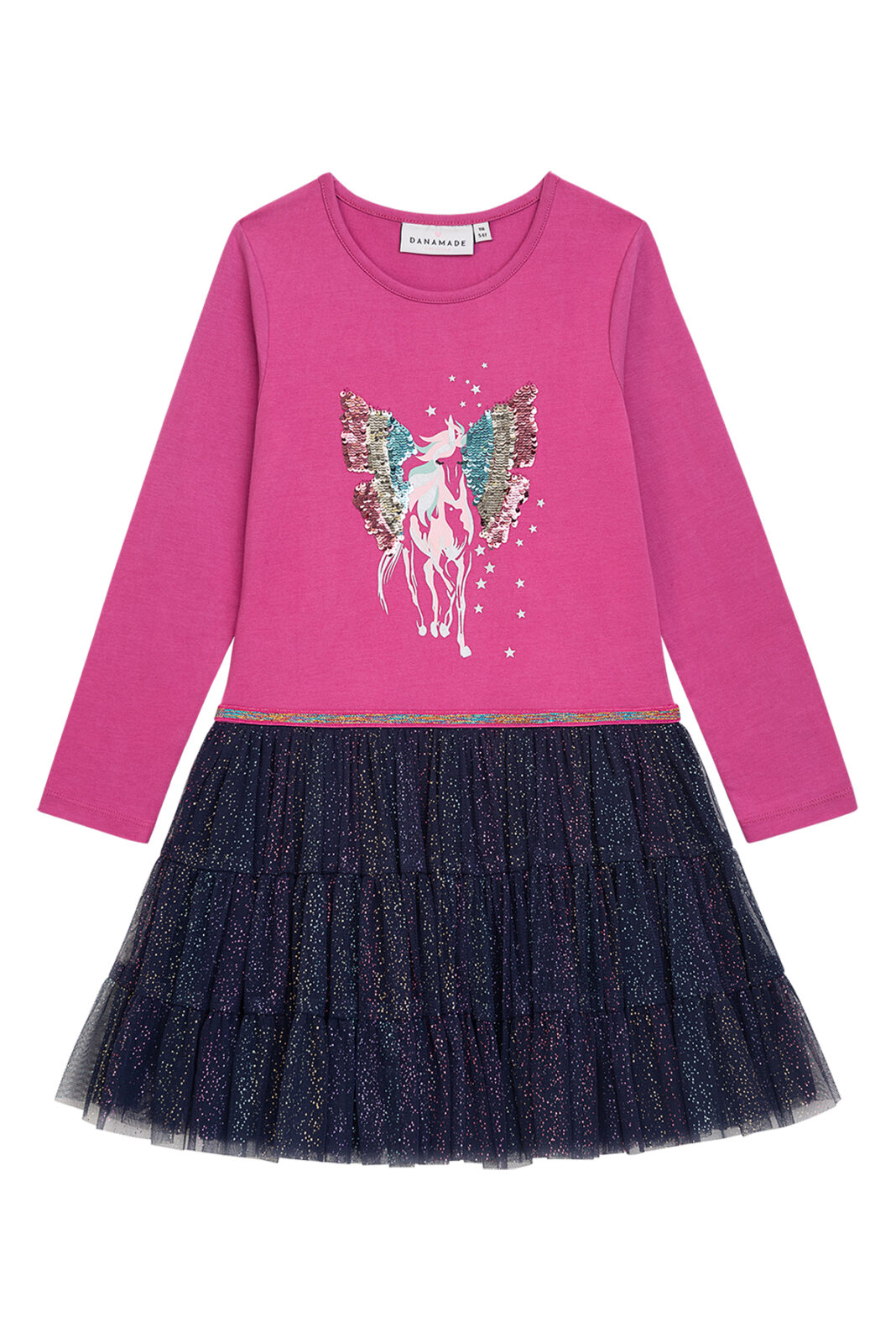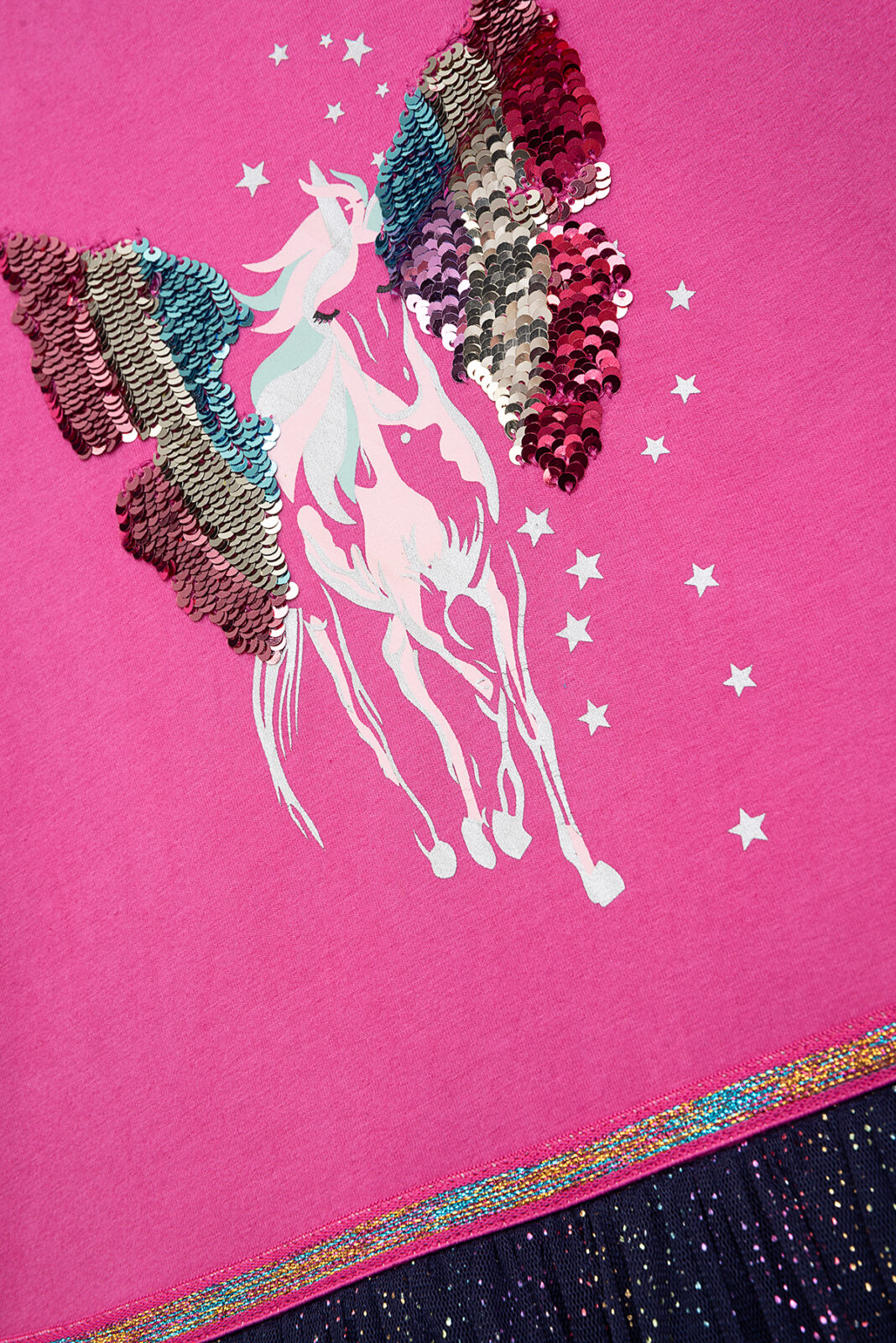 Jerseykleid Einhorn mit Paillettenflügel und Tüllrock Glitzer