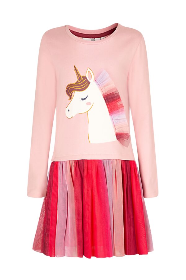 Sweatkleid Einhorn mit Tüllmähne, Tüllrock Farbverlauf