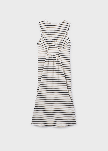 Jerseykleid lang Ringel mit Loch am Rücken, Seitenschlitze