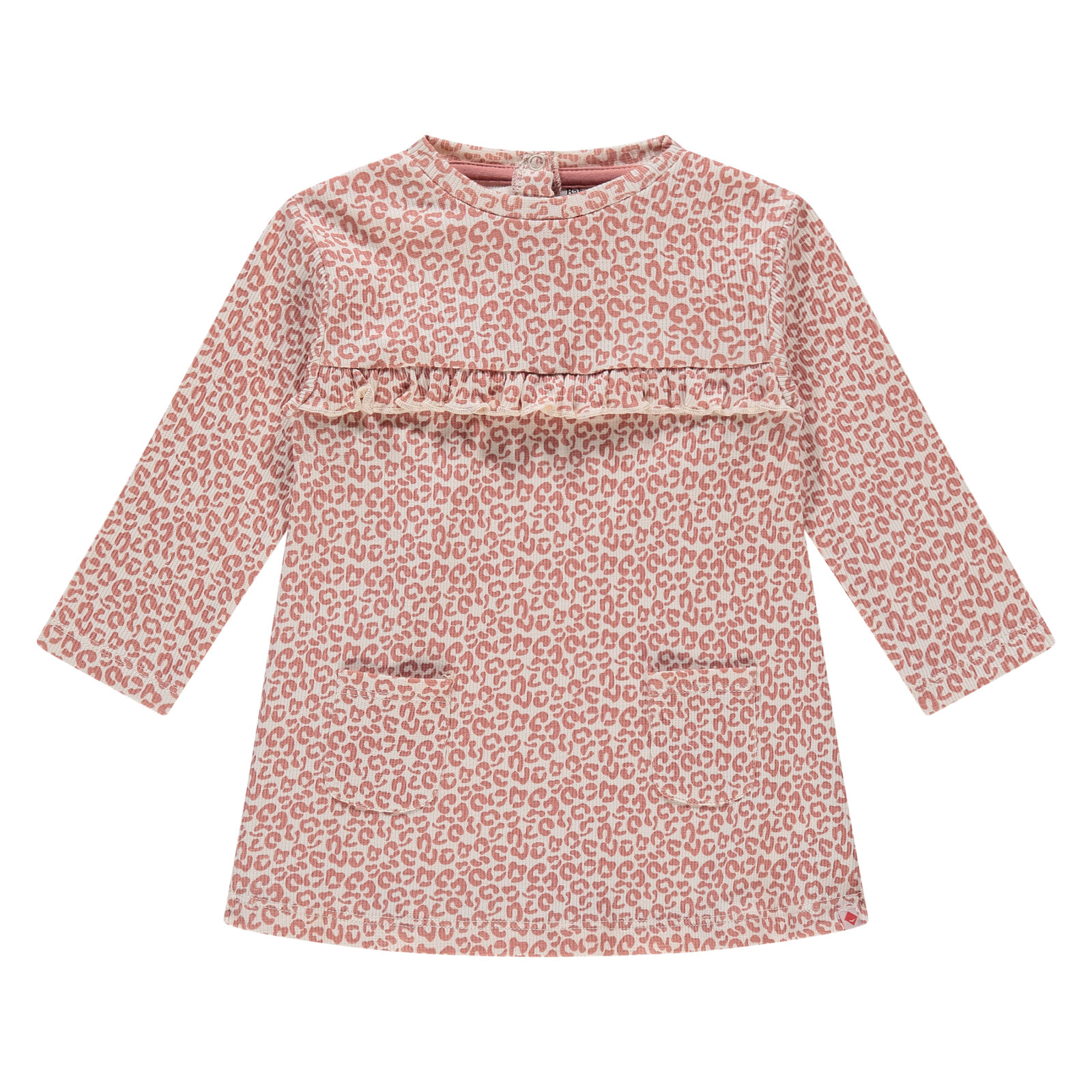 Kleid langarm, Animalprint mit 2 Fronttaschen und Rüsche über Brust