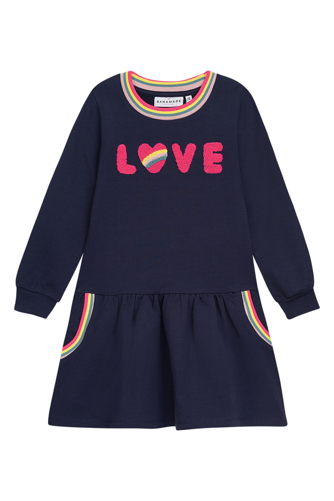 Sweatkleid Love, Frotteeapplikation, Ringelbörtli