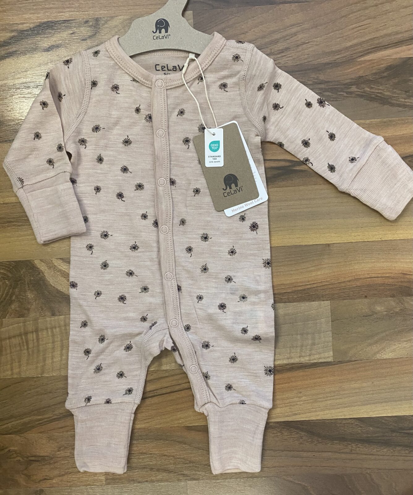 Pyjama Blumen mit Umstülpfuss und -Arm bis Grösse 80