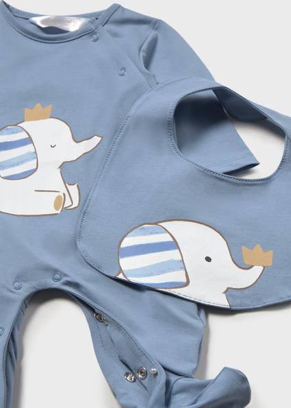 Pyjama Jersey Elefant mit separatem Lätzli, Druckknopfverschluss seitlich und am Bein