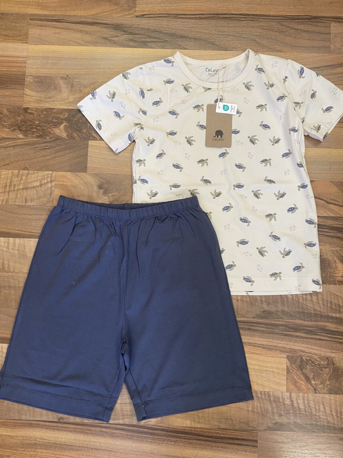 Pyjama kurz Schildkröten, Hose uni blau