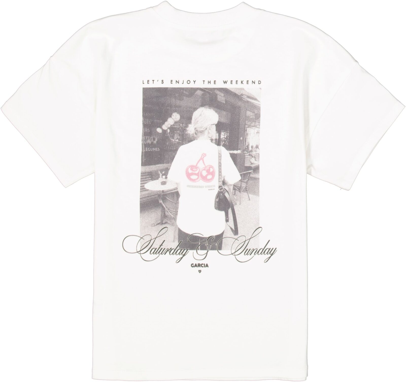 T-shirt 2 kleine Kirschen Glitter, Rückendruck Shoppinggirl let’s enjoy the weekend