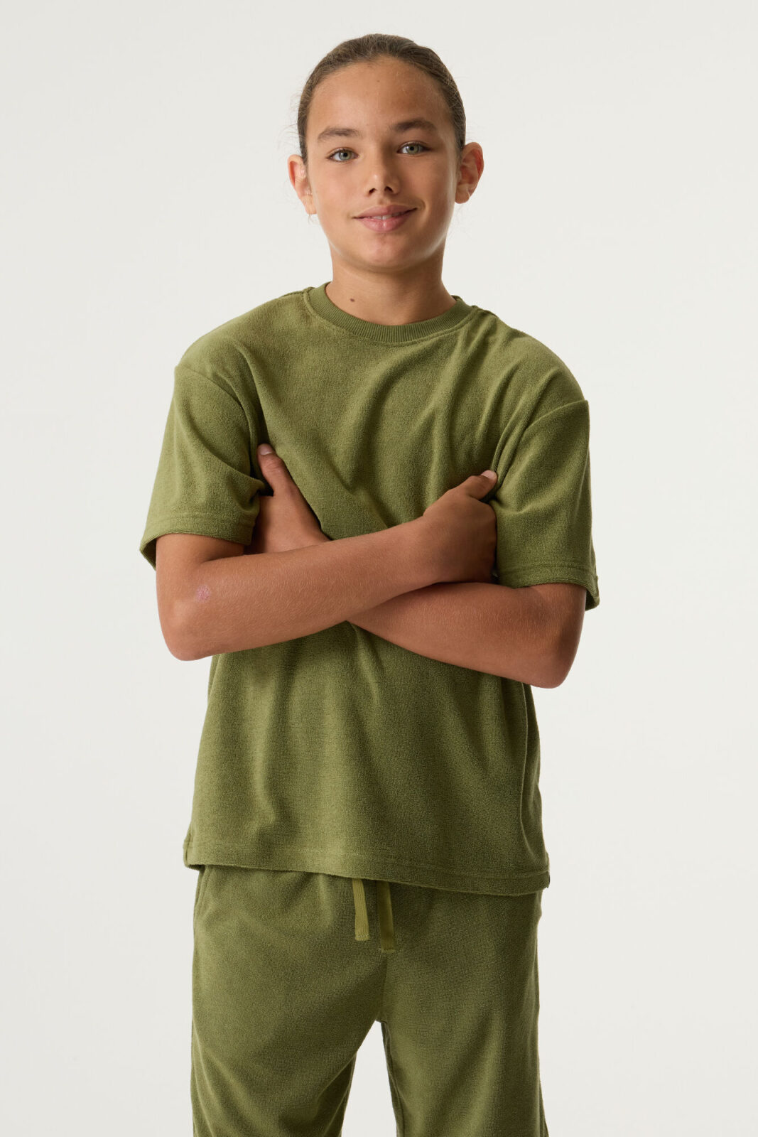 T-Shirt Frottee uni, kleine Stickerei im Nacken